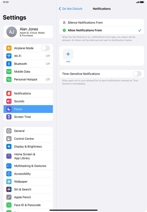 Press the indicator next to "Time-Sensitive Notifications" to turn display of timed notifications on or off when Do Not Disturb is turned on.
