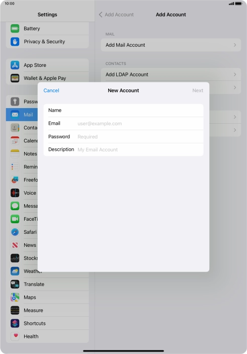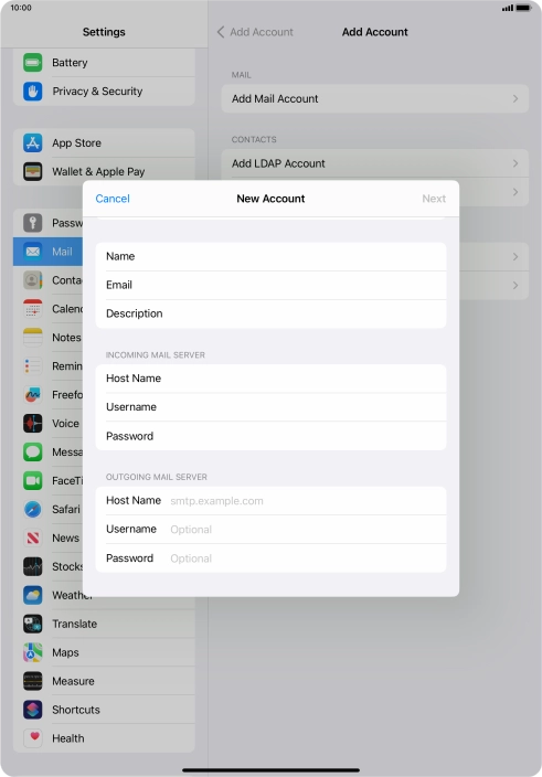 Press Add Mail Account.