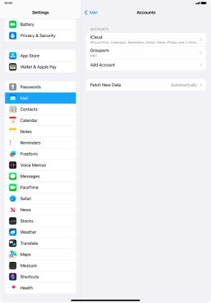 Press the required email account and follow the instructions on the screen to select settings for the specific account.