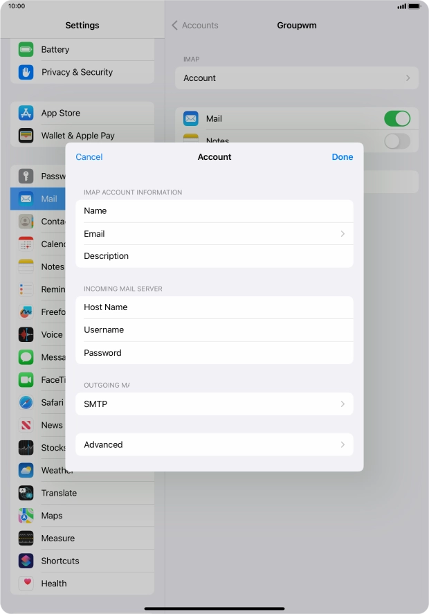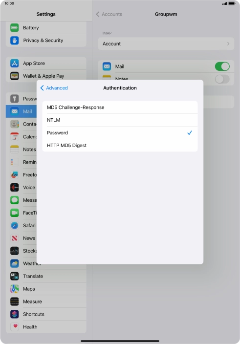 Press Password and key in the password for your email account.