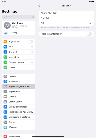Press the required setting to turn the function on or off. If you turn on the function, you need to follow the instructions on the screen to set up Siri to recognise your voice.