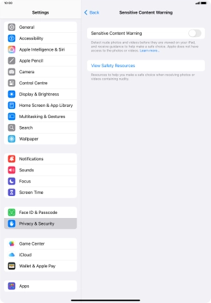 Turn Sensitive Content Warning on your Apple iPad Pro 11 iPadOS 18 on or off