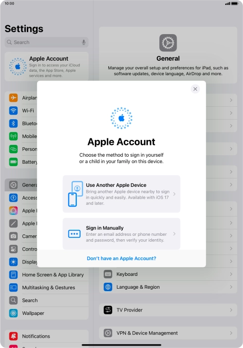 Press Apple Account.