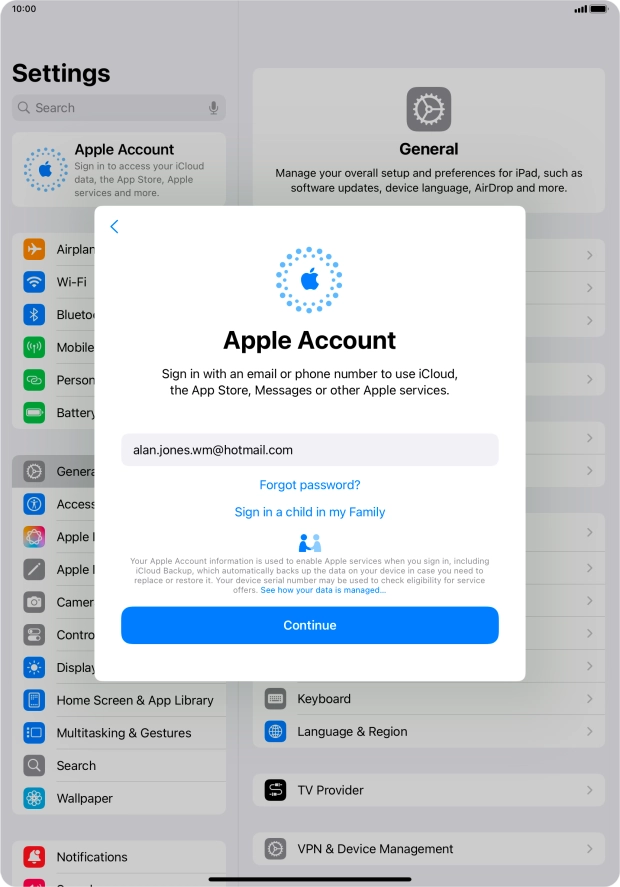 Press Password and key in the password for your Apple ID.