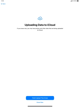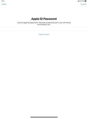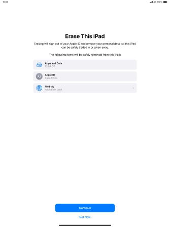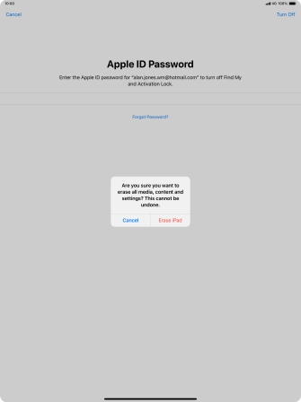 Key in the password for your Apple ID and press Erase iPad. Wait a moment while the factory default settings are restored. Follow the instructions on the screen to set up your tablet and prepare it for use.