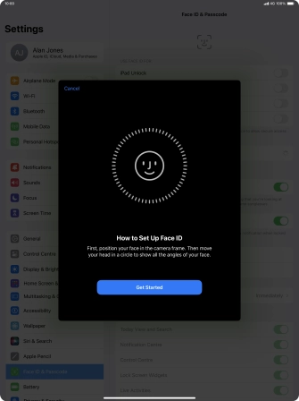 Press Get Started and follow the instructions on the screen to set up Face ID.