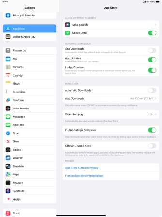 Turn automatic synchronisation of apps and app content on your Apple iPad Pro 12.9 (2018) iPadOS 17 on or off