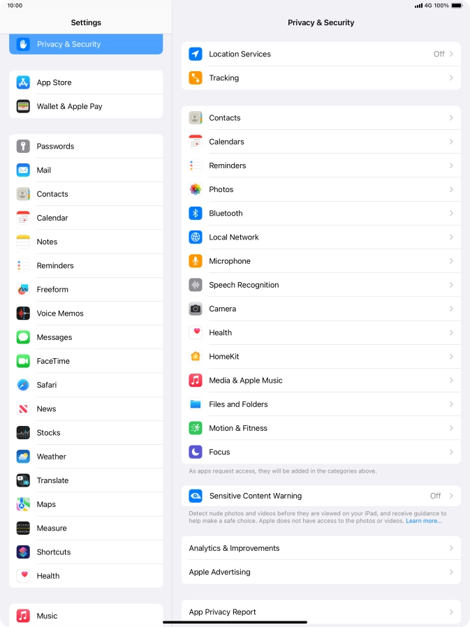 Press Privacy & Security.