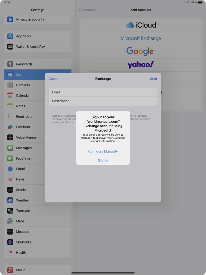 Cause 1 of 3: Your tablet hasn't been correctly set up for Exchange email