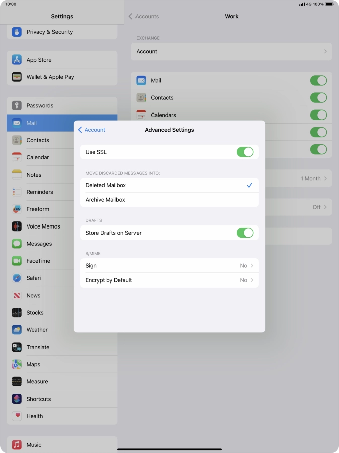 Press the required email account and follow the instructions on the screen to select settings for the specific account.