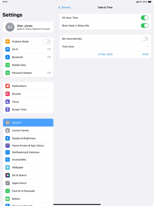 2 Turn on automatic update of time zone, time and date.
