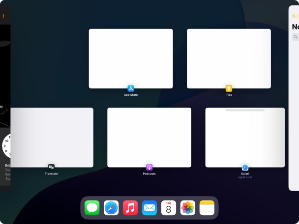 Press the required application in Dock and drag it to the required location on the screen.