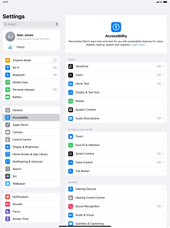 Select accessibility settings on your Apple iPad Pro 12.9 (2018) iPadOS 18