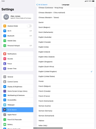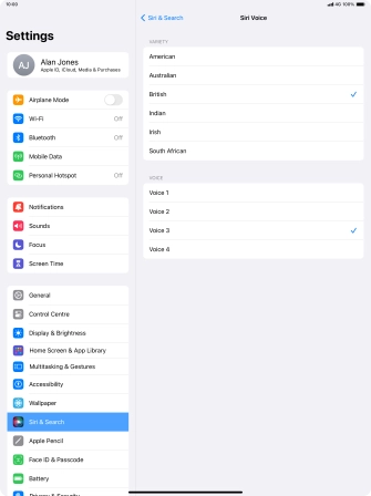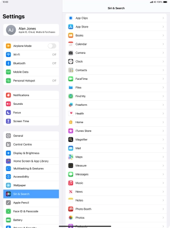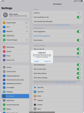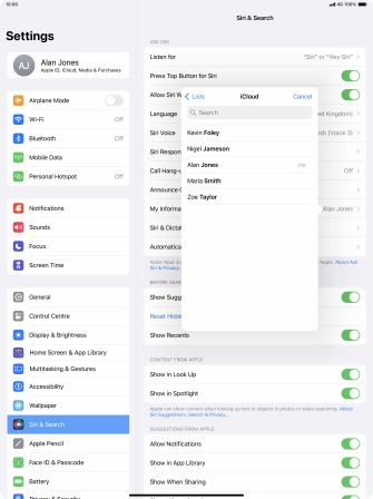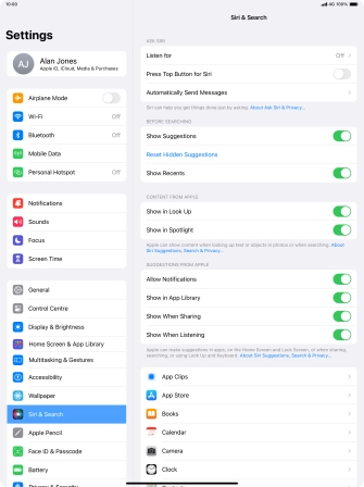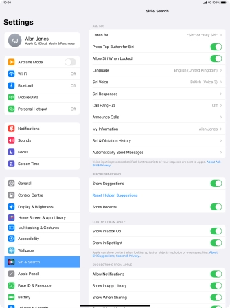 Select Siri settings on your Apple iPad Pro 12.9 (2020) iPadOS 17