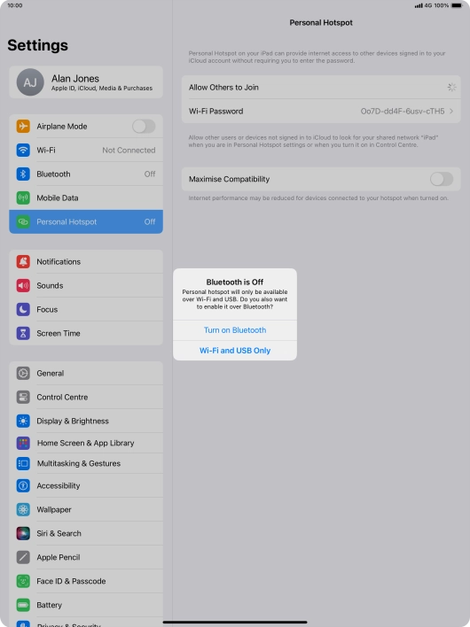 If Wi-Fi is turned on, press Wi-Fi and USB Only.