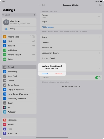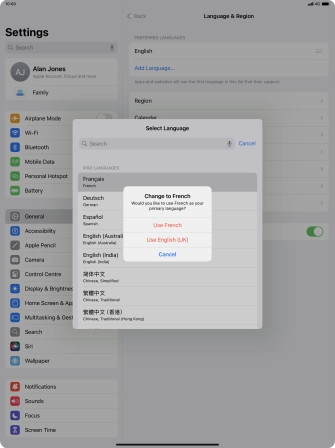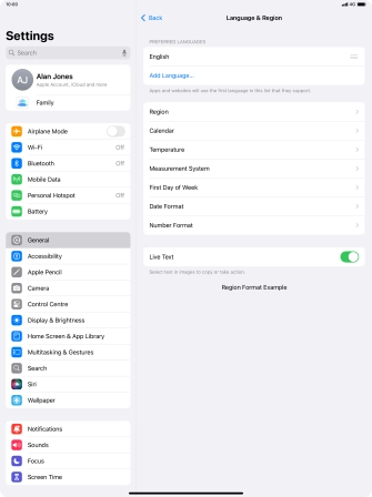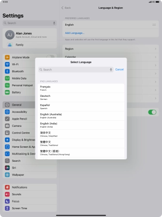 Select language on your Apple iPad Pro 12.9 (2020) iPadOS 18