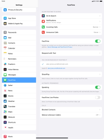 Press the required setting below "YOU CAN BE REACHED BY FACETIME AT".