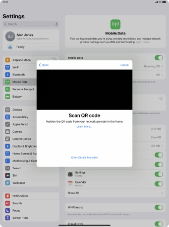Place the QR code you've received inside the tablet camera frame to scan the code.