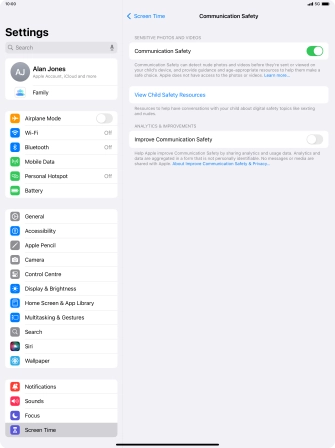 Turn Communication Safety on your Apple iPad Pro 12.9 (2022) iPadOS 18 on or off