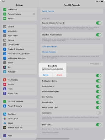 Turn use of lock code on your Apple iPad Pro 12.9 (2022) iPadOS 18 on or off