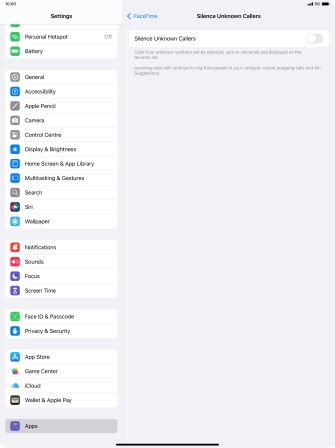 Press the indicator next to "Silence Unknown Callers" to turn the function on or off.