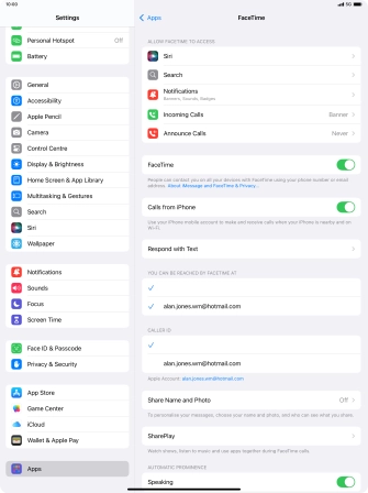 Press the required setting below "YOU CAN BE REACHED BY FACETIME AT".