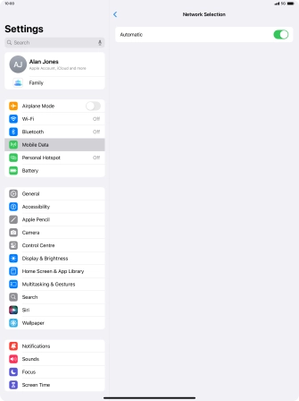 Press the indicator next to "Automatic" to turn automatic network selection on or off.