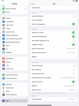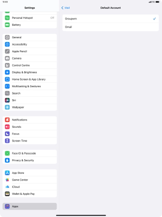 Select default email account on your Apple iPad Pro 12.9 (2022) iPadOS 18