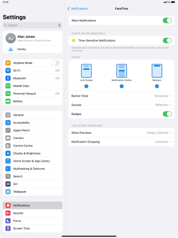 Press the indicator next to "Time-Sensitive Notifications" to turn the function on or off.