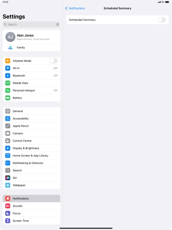 Press the indicator next to "Scheduled Summary" to turn on the function and follow the instructions on the screen to set the notification summary.