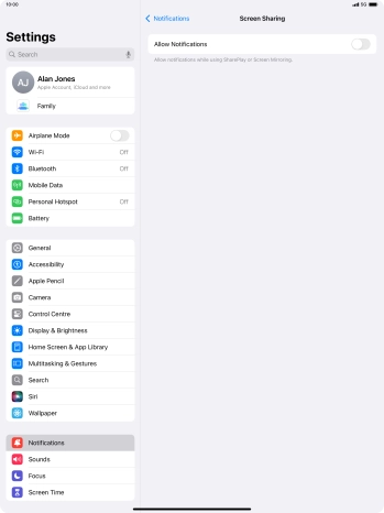 You can turn display of notifications when using SharePlay or Screen Mirroring on or off.