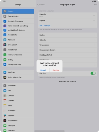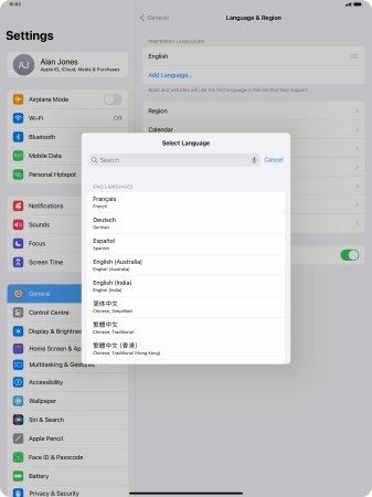 Select language on your Apple iPad Pro 13 (2024) iPadOS 17