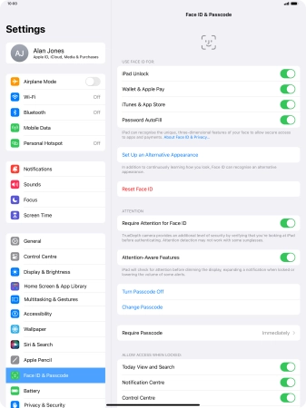 You can use your Face ID to turn off the lock code, allow access to apps and authorise payments.