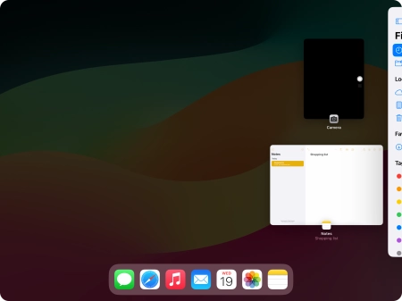 Press the required application in Dock and drag it to the required location on the screen.