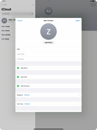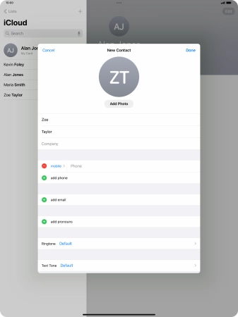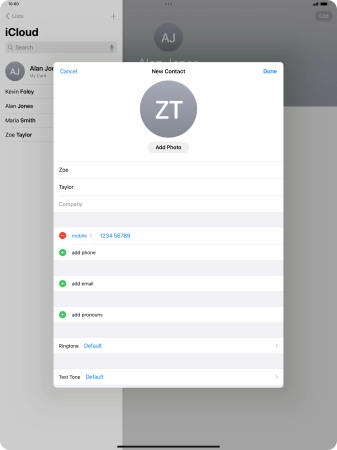 Create contact on your Apple iPad Pro 13 (2024) iPadOS 17
