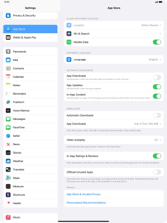 Turn automatic synchronisation of apps and app content on your Apple iPad Pro 13 (2024) iPadOS 17 on or off