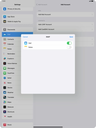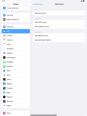 Press the required email account and follow the instructions on the screen to select settings for the specific account.
