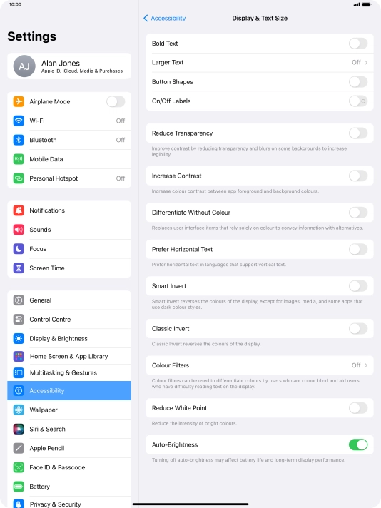 Press the indicator next to "Auto-Brightness" to turn automatic brightness on or off.