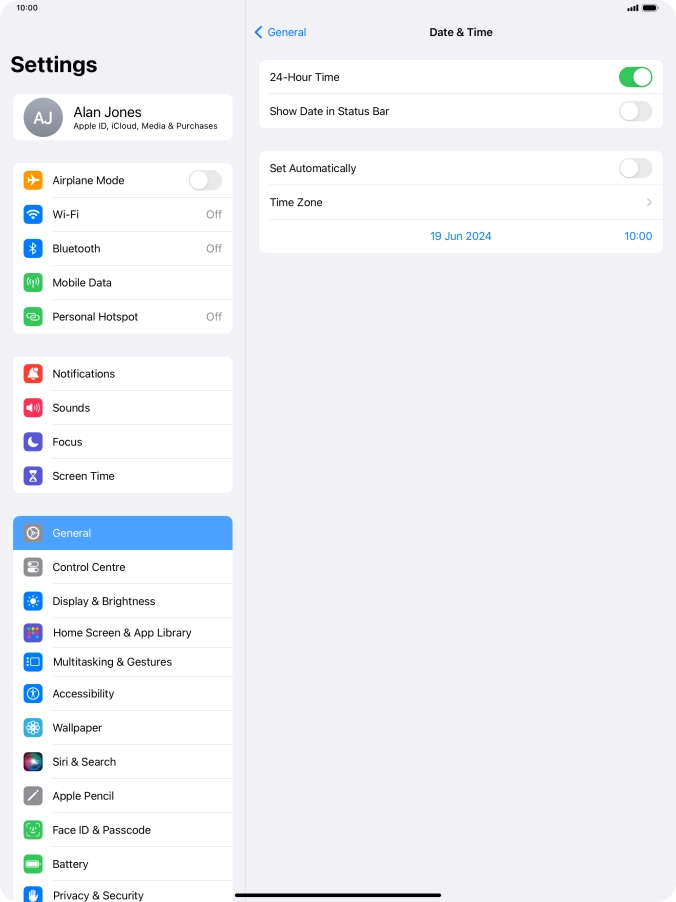 2 Turn on automatic update of time zone, time and date.