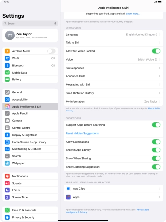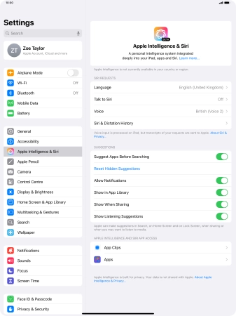 Press Apple Intelligence & Siri.