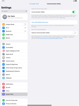 Turn Communication Safety on your Apple iPad Pro 13 (2024) iPadOS 18 on or off