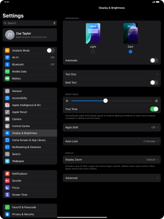 Use Dark Mode on your Apple iPad Pro 13 (2024) iPadOS 18