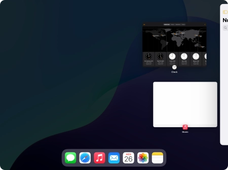 Press the required application in Dock and drag it to the required location on the screen.