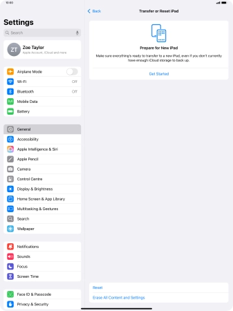 Prepare transferring content from your Apple iPad Pro 13 (2024) iPadOS 18 to new iPad
