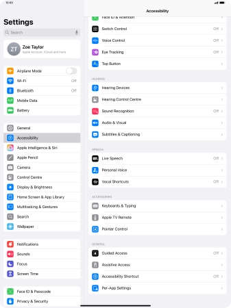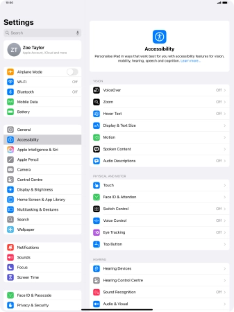 You can select different settings for tablet interaction control, e.g. AssistiveTouch, Voice Control and Eye Tracking making it easier to navigate your tablet.