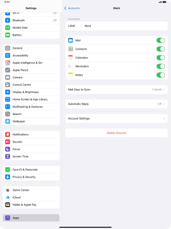 Delete email account on your Apple iPad Pro 13 (2024) iPadOS 18