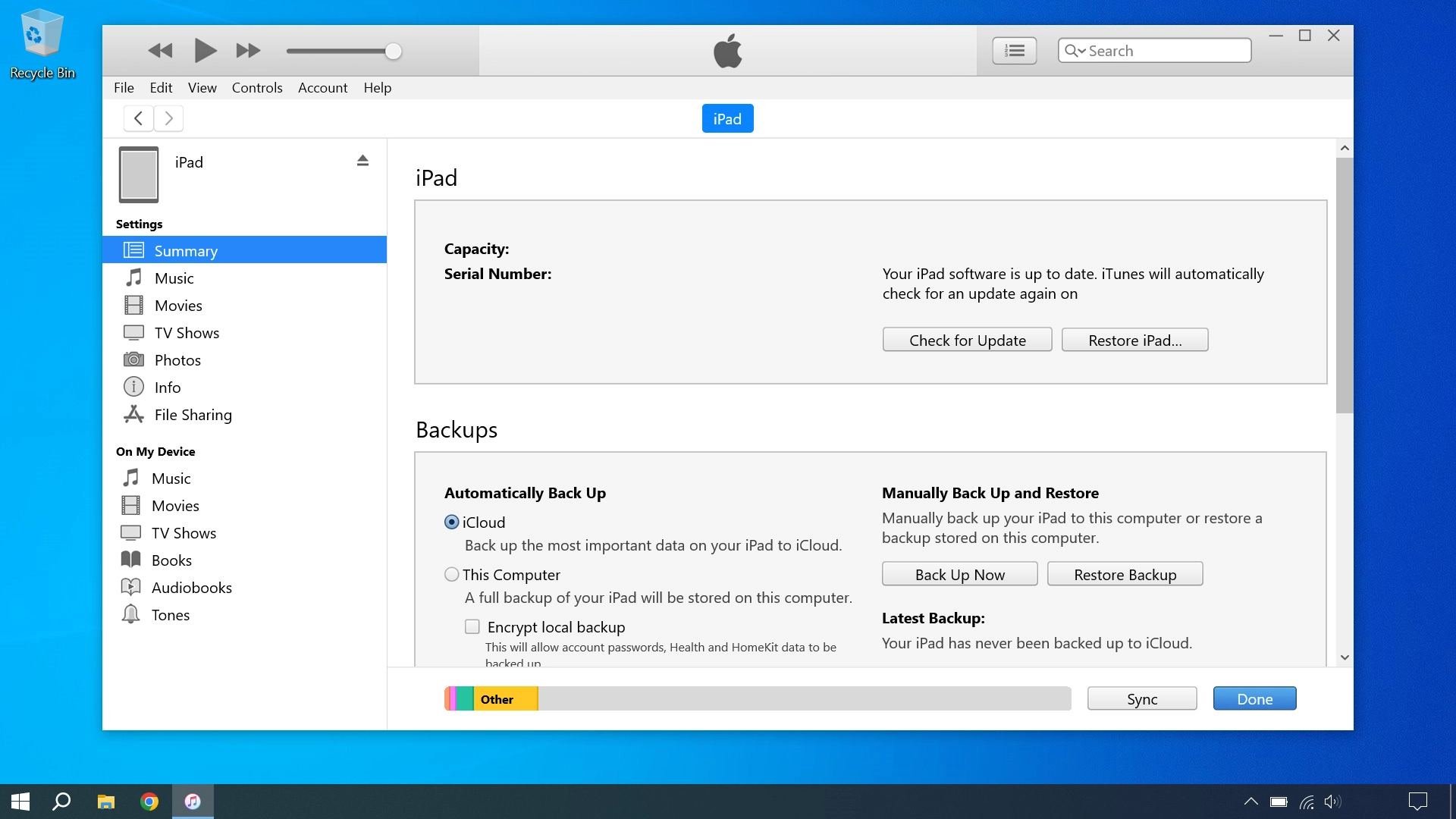 Depending on your settings in iTunes, the transfer may start automatically. To manually start the transfer, click the iPad icon.
