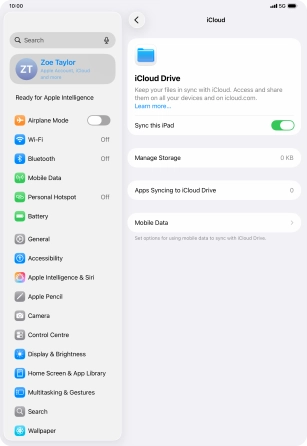 Press the indicator next to "Sync this iPad" to turn the function on or off.