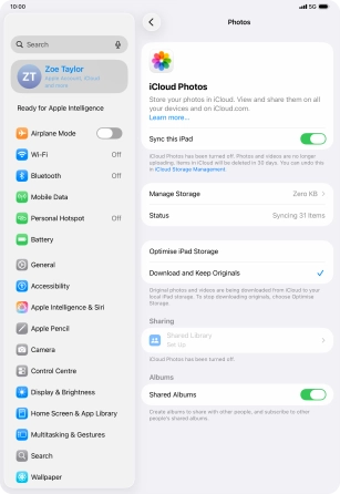If you turn on the function, all new pictures on your tablet are synchronised with other devices via iCloud.