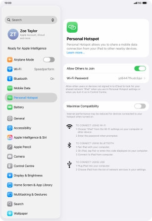 Use your Apple iPad Pro (M5) 11-inch iPadOS 26 as a personal hotspot